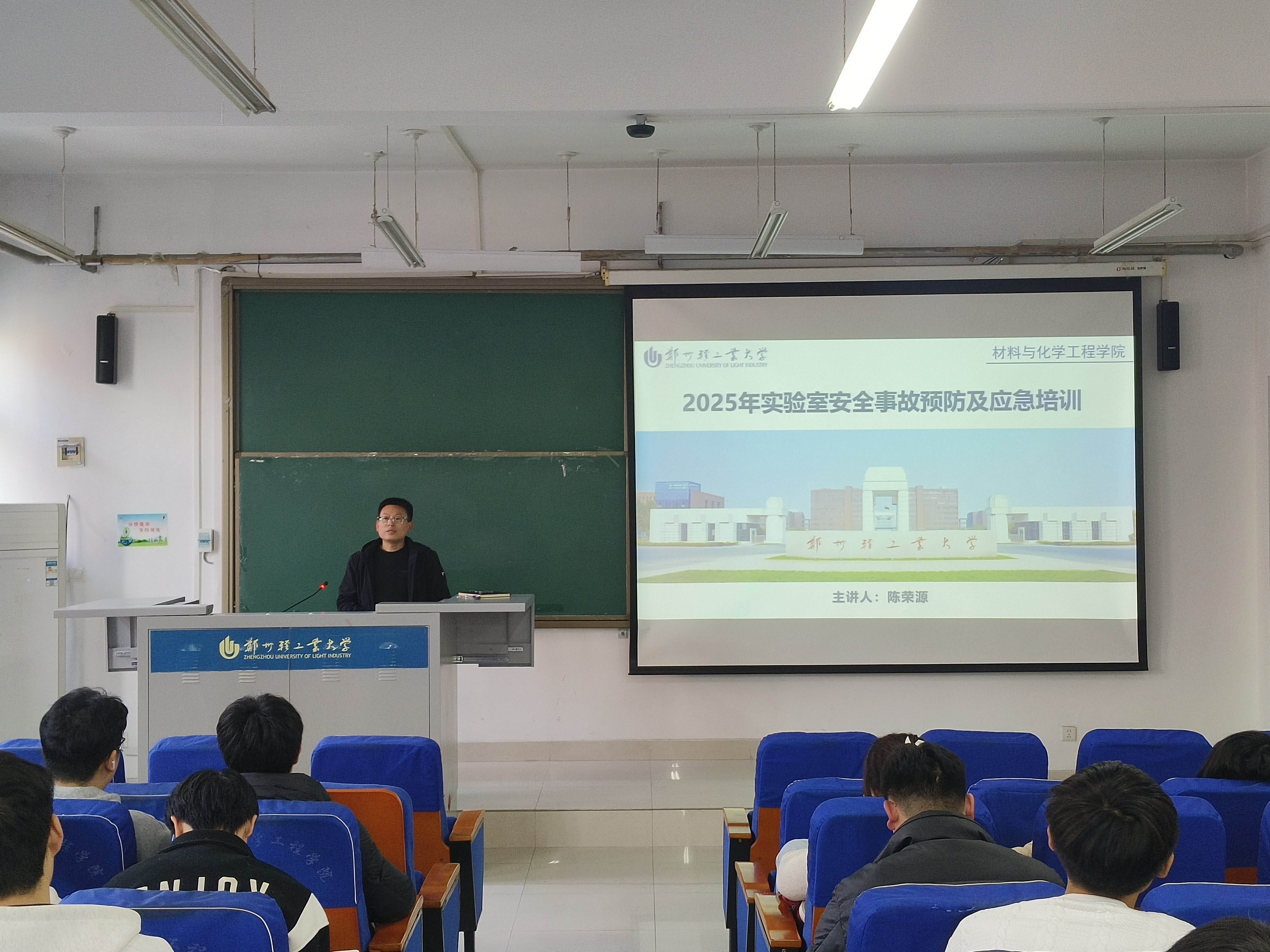 为深入贯彻落实习近平总书记关于安全生产的重要指示精神,落实教育部《关于加强高校实验室安全工作的通知》《河南省教育厅办公室转发教育部高等教育司关于加强高校实验室安全工作的通知》工作部署,进一步加强实验室安全管理,开展系列实验室安全文化宣传与建设月活动。2025年10月31日,材料与化学工程学院组织2025级全体研究生进行了《实验室安全事故预防及应急》专题培训,培训由学院实验实践教学中心主任陈荣源主讲。