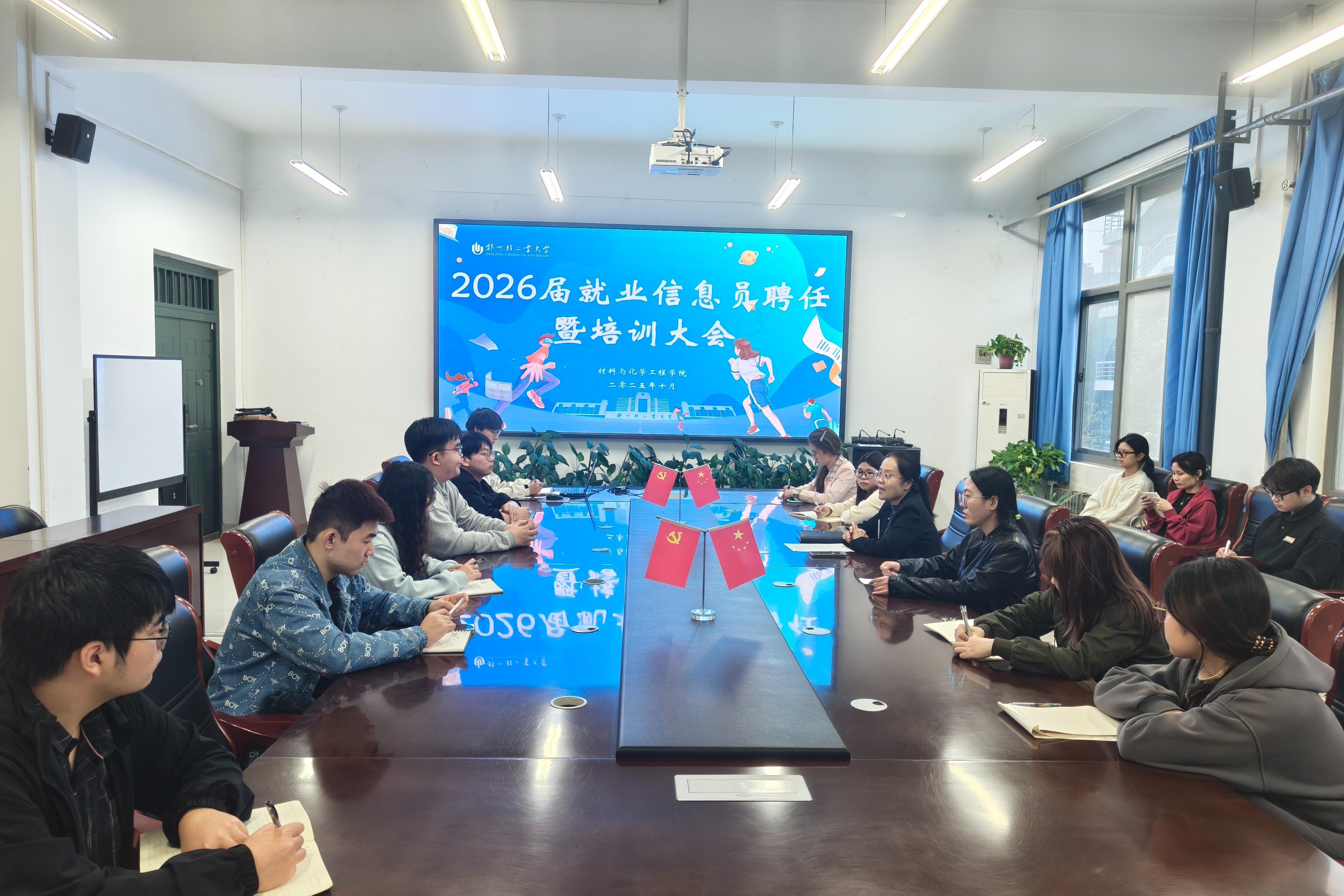为进一步强化2026届毕业生就业信息流通效能,优化毕业生就业管理与服务模式,助力毕业生高质量就业,10月17日,材料与化学工程学院于化工楼222会议室举行就业信息员聘任暨培训会。学院党委副书记司丽娜,辅导员代表、就业专职教师和2026届各班就业信息员出席会议。