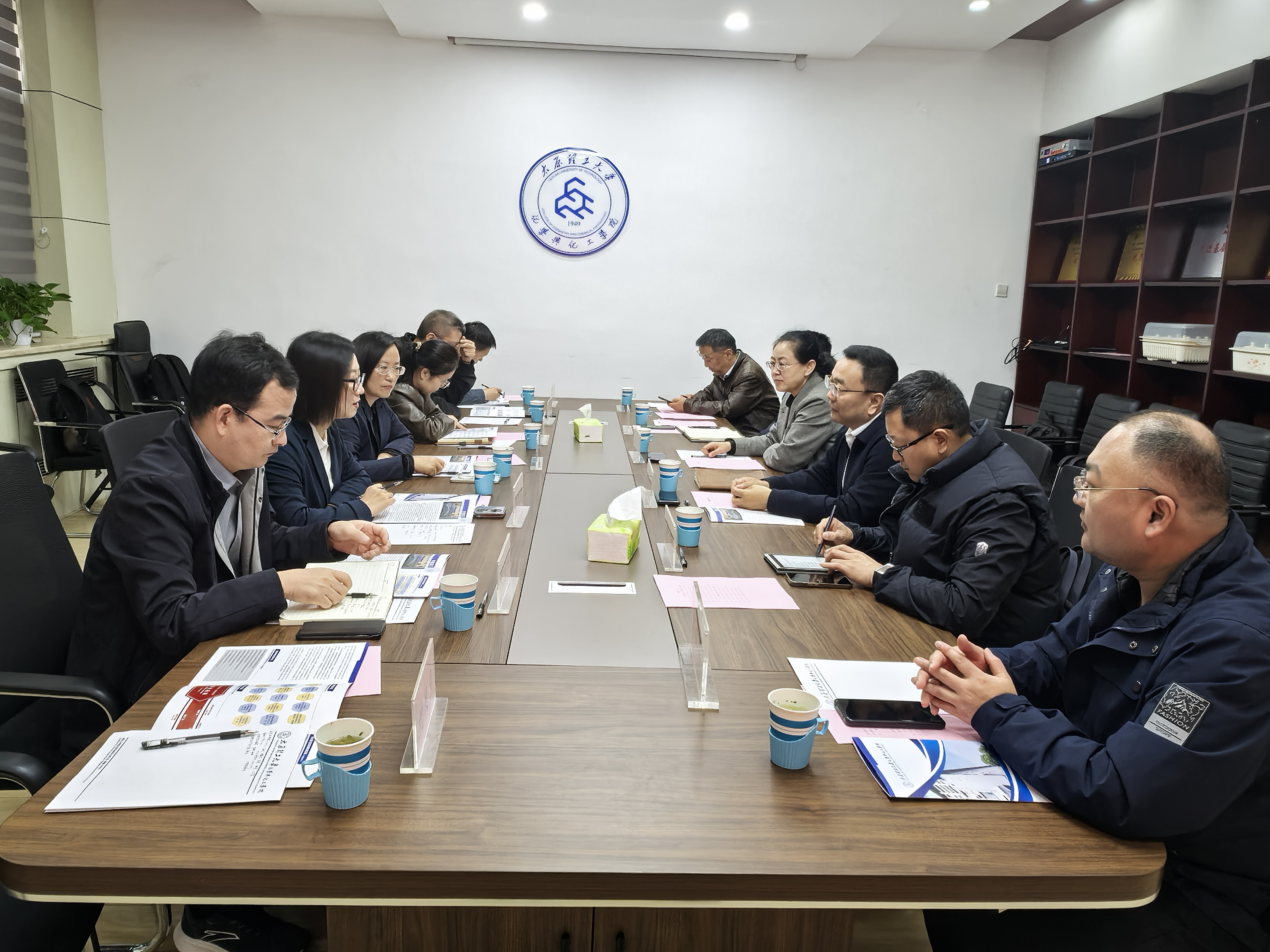 在太原理工大学化学与化工学院,学院一行与张琤书记、吴旭院长等班子成员进行了座谈交流。座谈会上,太原理工大学化学与化工学院院长吴旭详细介绍了学院在化学工程与技术双一流学科建设的特色做法,重点分享了其在人才队伍引培、科教融汇育人、国家级平台建设以及高效能治理方面的成功经验。双方围绕基层党建、专业建设、科技创新、团队建设、学生工作等展开深入交流。学院一行认真听取经验介绍,并就学院在材料与化工专业学位博士点申报、高层次人才引育、标志性成果培育等方面与对方进行了坦诚沟通。会后,学院一行参观了太原理工大学化学化工基础实验山西省实验教学示范中心。