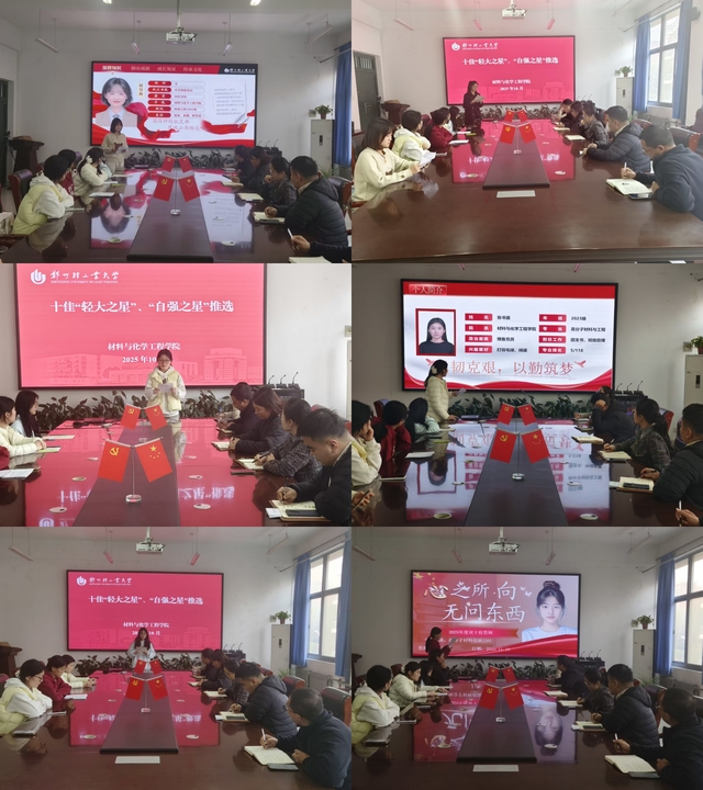 11月10日,材料与化学工程学院在化工楼222会议室举办2025年十佳“轻大之星”、十佳“自强之星”院级评选推荐活动。学院党委副书记司丽娜、辅导员、班主任及学生代表参加了此次活动。
