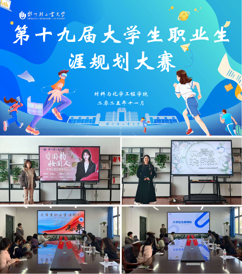 为进一步增强大学生的职业规划意识,引导大学生通过学习实践提升综合素质和能力,及早做好就业准备,以择业新观念打开就业新天地,促进高质量充分就业。11月20日,材料与化学工程学院在化工楼217、222举办大学生职业生涯规划大赛。学院辅导员、班主任代表及往届大赛获奖学生担任本次比赛评委。