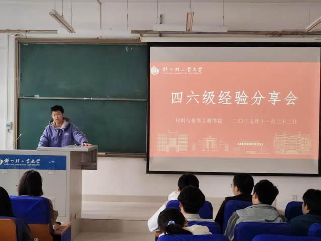 为帮助学院学子系统厘清英语四六级复习方向、掌握高效备考方法、提振应考信心,11月22日,材料与化学工程学院于化工楼218教室成功开展英语四六级考试经验交流会。学院2024级、2025级百余名同学参加。