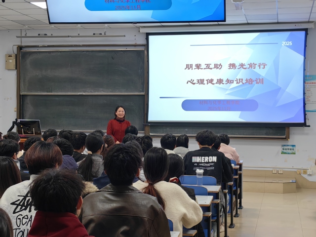 为切实增强大学生心理健康安全意识,进一步发挥学生骨干在师生间的桥梁纽带作用,筑牢校园心理健康防护网,11月27日,材料与化学工程学院在东风校区教三楼108教室成功举办“朋辈互助 携光前行”主题心理健康知识培训。学院2025级各班班长、团支书、心理委员及宿舍信息员参会。本次培训由学院负责心理健康教育工作的专职辅导员郭智荣主讲。