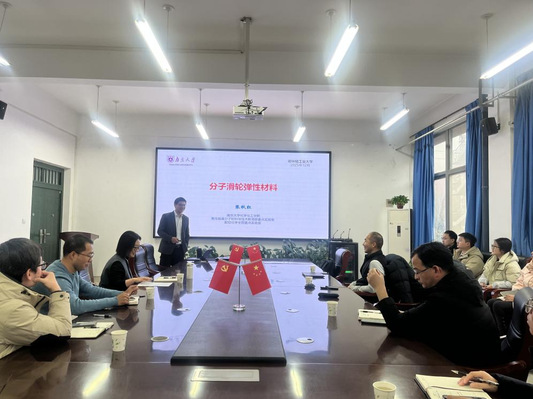 2025年12月12日上午,应材料与化学工程学院邀请,中国科学院化学研究所符文鑫研究员、南京大学张秋红教授莅临我校,在化工楼222会议室分别作题为“高性能聚合物电介质材料”和“分子滑轮弹性材料”的学术报告,学院院长张晓静、相关专业教师和研究生参加了报告,会议由张晓静院长主持。