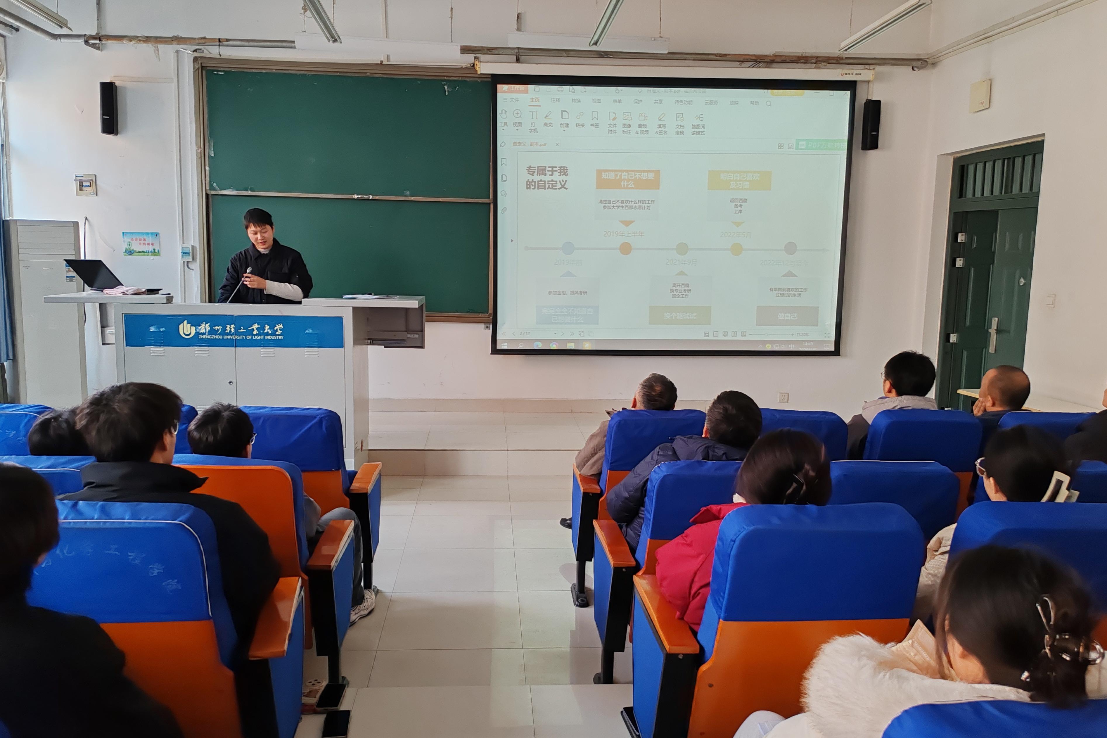 为引导学生树立正确就业观,鼓励青年学子投身西部建设,1月5日,材料与化学工程学院举办西部基层就业优秀校友经验分享会。学院邀请扎根西藏工作的2015级应用化学专业优秀校友冷本凯来校,应用化学系教师、有意向赴西部就业的毕业生及大三学生代表参加会议。