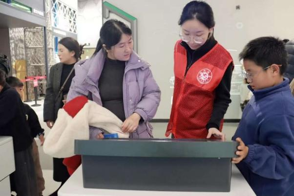 活动当天,志愿者准时抵达场馆,在工作人员指导下接受岗前培训,系统学习场馆分布、展品操作规范及安全须知。服务期间,志愿者充分发挥材化专业优势,在“轮子上的世界”“看得见的奥秘”“追光之旅”等特色展区结合材料力学、摩擦学、光学、新能源材料等知识,为参观者细致解读科学原理,用通俗生动的讲解激发青少年科学探索热情。